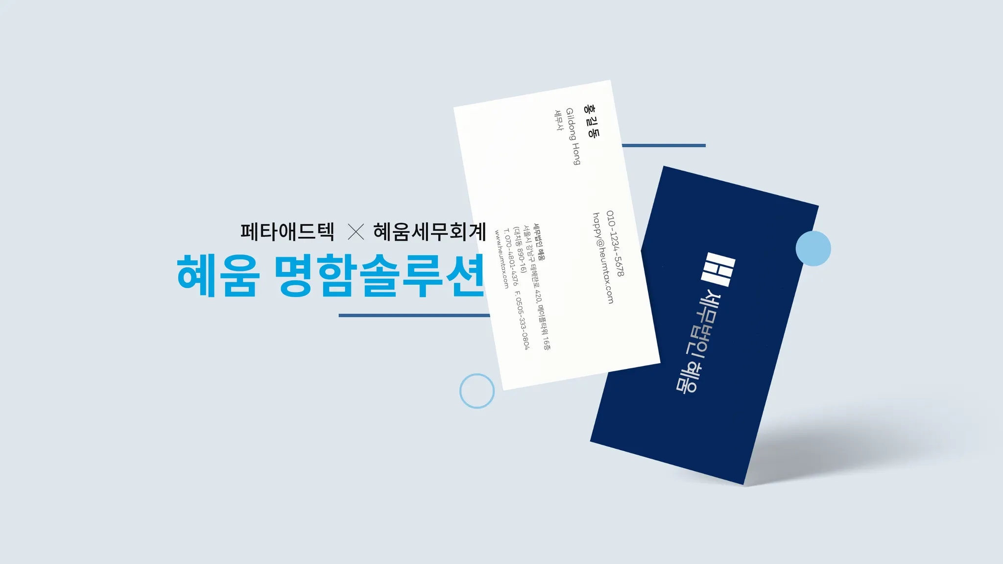 세무법인 혜움과 명함 전문회사 페타애드텍이 제공하는 맞춤형 명함솔루션입니다.